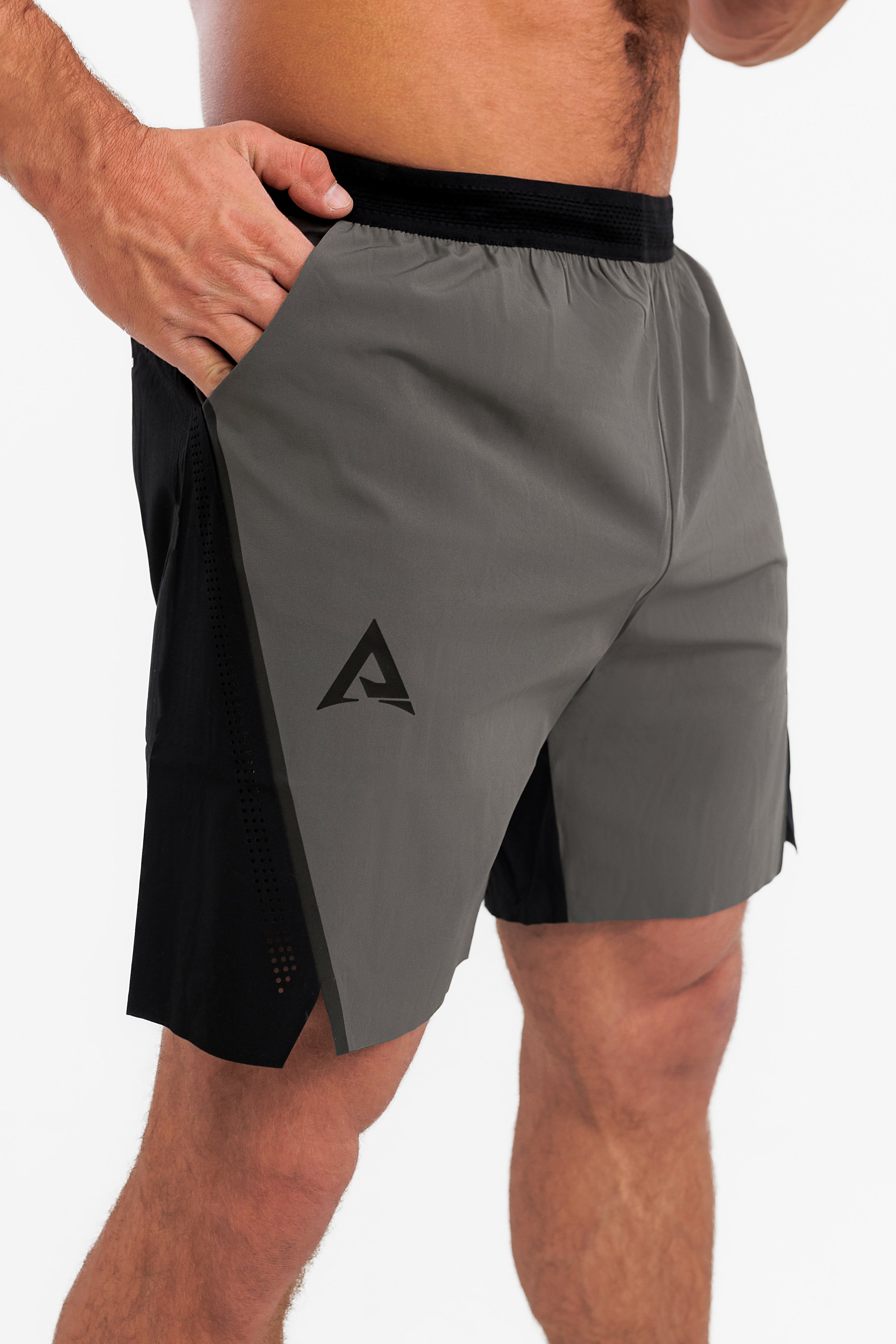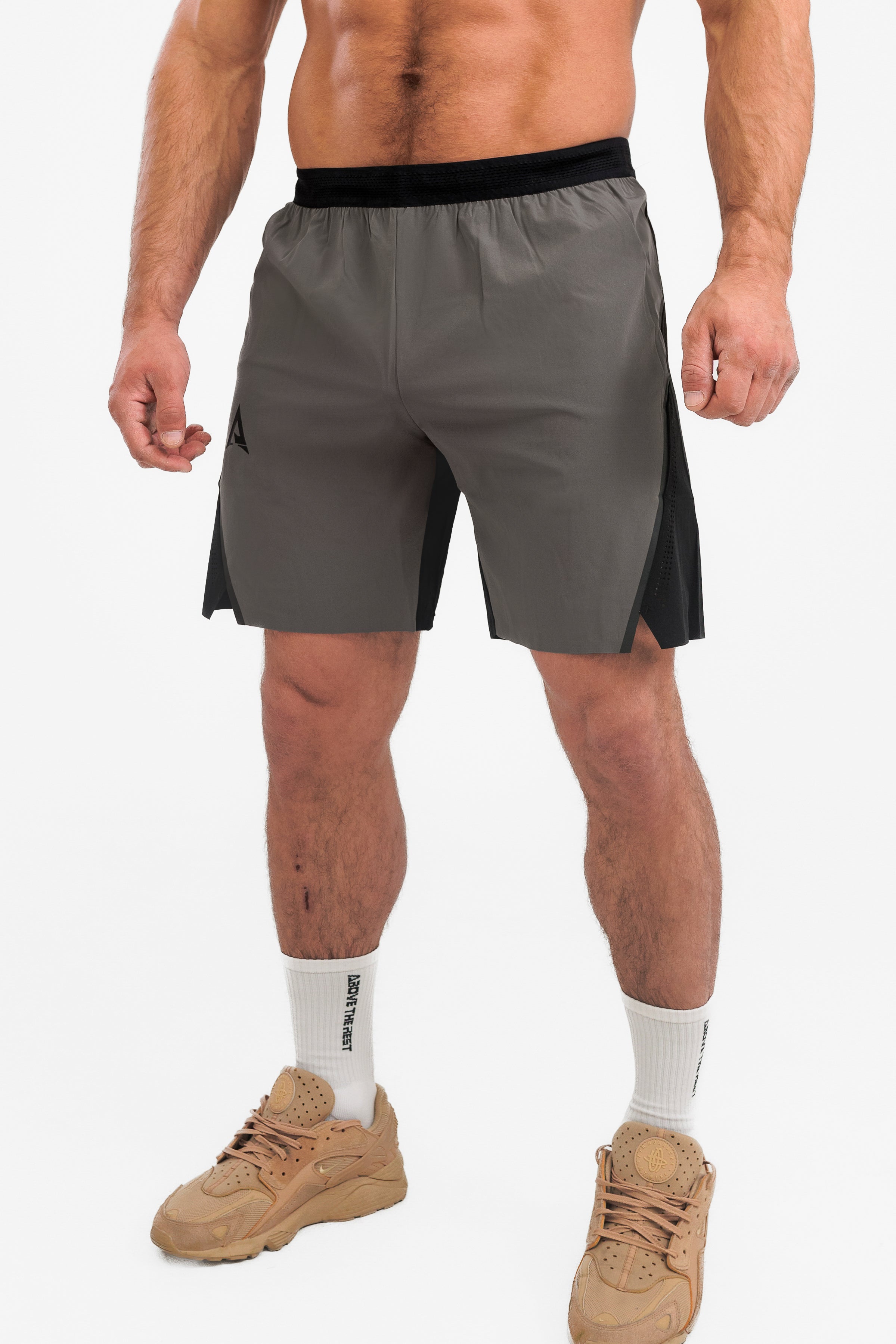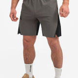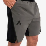 ABOVE THE REST Ви представя новия модел къси панталони DIVISION. Те са изработени от бързосъхнеща шушлякова материя, която предоставя комфорт и не ограничава двеженията Ви. Дизайнът е интересен и комбинира два цвята. Има множество детайли, като перфорирани зони, пришити аксесоари и елементи от фолио и интересен ластик. Късите панталони имат джобове отпред и един отзад, който се затваря с цип за удобство и сигурно съхранение на Вашите вещи, например по време на бягане или тренировка. Имат и връзки за стягане при необходимост от вътрешната страна на ластика. Те са идеалнитят избор за Вашата следваща тренировка!