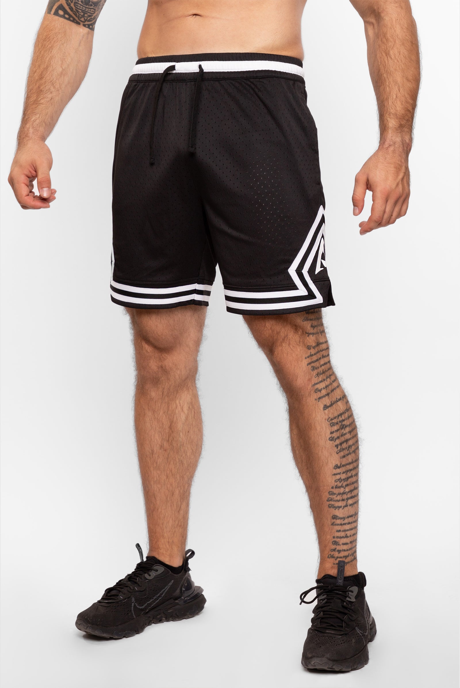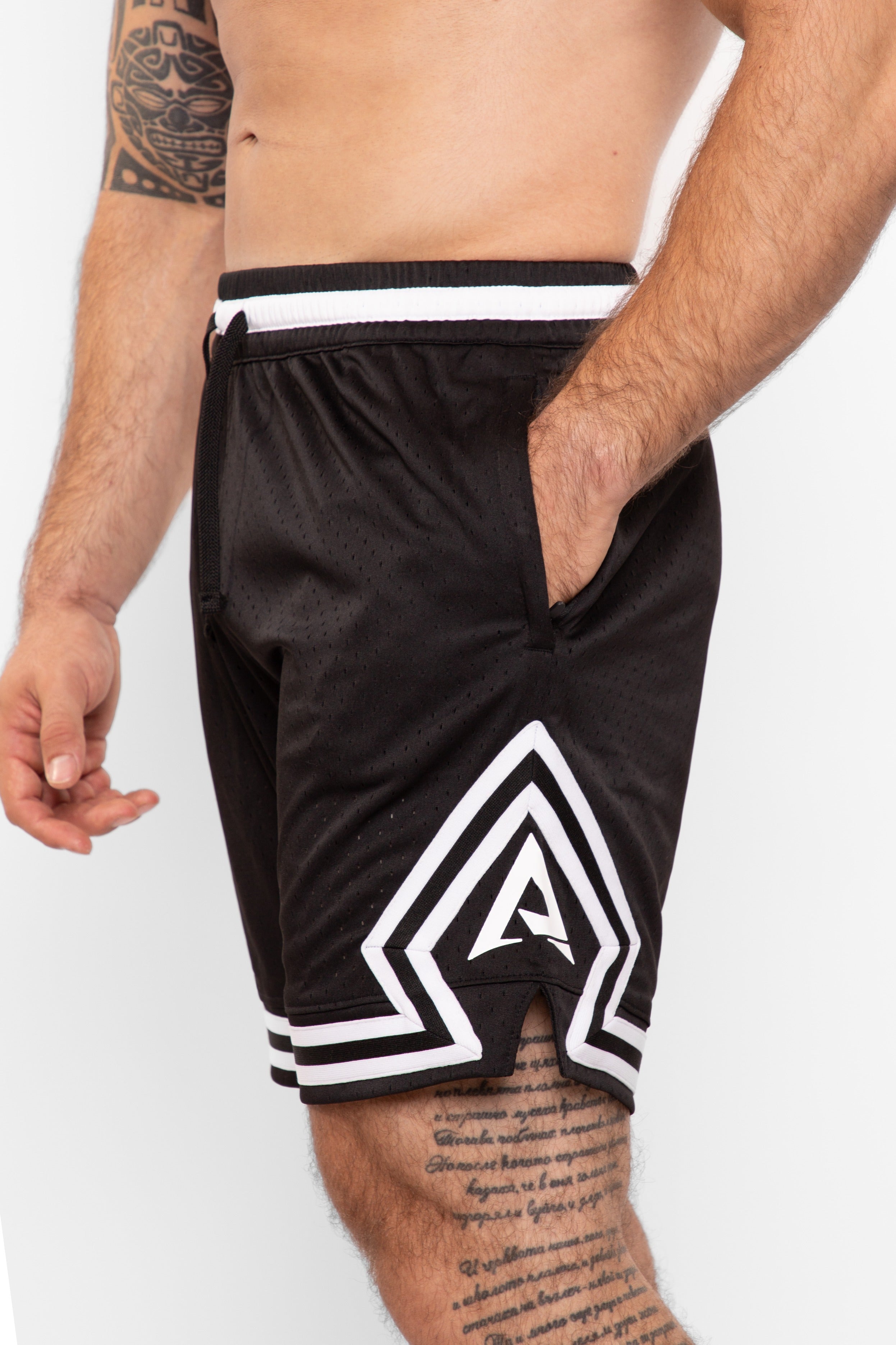 ABOVE THE REST Ви представя новият модел къси панталони CHAMPION. Те са изработени от тънка спортна материя на дупки, което ги прави изключително подходящи за всеки вид тренировка. Късите панталони имат сигурни джобове, затварящи се с полуавтоматичен брандиран цип и се предлагат в два класически цвята - бяло и черно, което ги прави лесни за съчетаване.