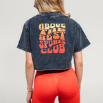 Тениска SPORTS CLUB е изработена от висококачествена и тежка, памучна материя. Кройката е скъсена и oversize, а материята - много приятна и мека при допир. Дизайнът е интересен и стилен, с голяма и цветна илюстрация на гърба. Подходяща е както за акцентиращ завършек на Вашата спортна визия, така и за ежедневни лайфстайл визии.