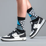 Чорапи ABOVE COLOUR са изработени от висококачествена памучна материя и имат стилен дизайн, съчетаващ интересни и открояващи се цветове. Високото съдържание на пениран памук в състава прави чорапите издръжливи, но и меки и приятни на допир с кожата. Удобни, хипоалергенни и абсорбиращи влагата, чорапите са изключително подходящи за хора с чувствителна кожа. Имат мрежа отгоре за допълнителна вентилация.