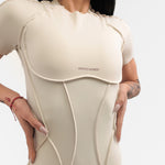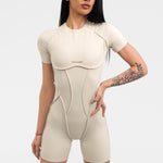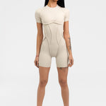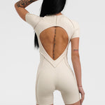 Къс гащеризон INFINITY e едно от най-новите предложения от Above The Rest. Изработен е от еластична материя с премиум качество, която ще Ви впечатли със своята гладкост и мекота при допир. Дизайнът е атрактивен и различен, с обърнати шевове и гол гръб, а кройката подчертава и оформя фигурата. Не възпрепятства движенията и осигурява максимална свобода за действие по време на спортни занимания от всеки тип.