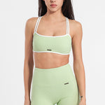 Бюстие XETRA e изработено от висококачествена и еластична материя, с рипсова релефна текстура. Бюстието има интересен и открояващ се дизайн, съчетаващ два цвята и тънки преплитащи се презрамки, които подчертават гърба. Бюстието има подпрънки и се предлага в шест актуални и красиви цвята.