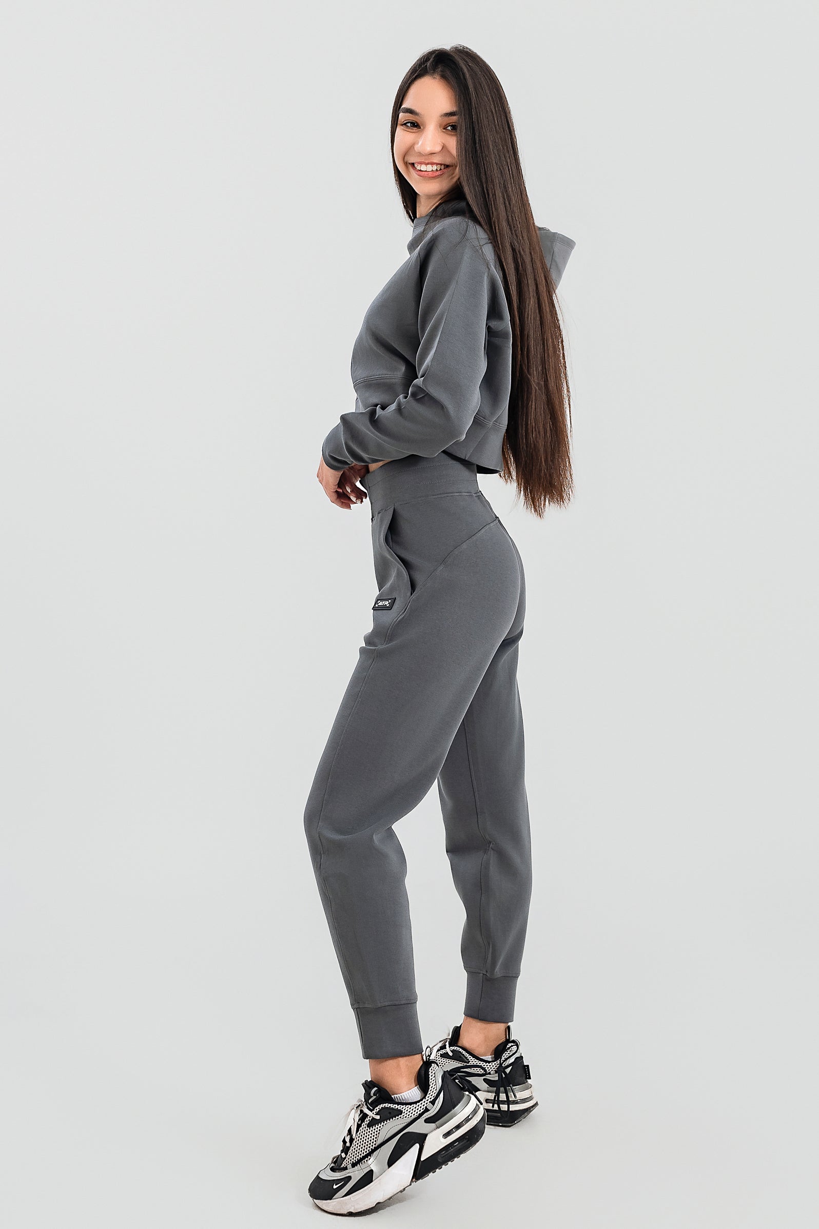 Долнище HERA е изработено от висококачествена и еластична материя, съчетаваща памук и полиестер, не е ватирано и е изключително подходящо за пролетта. Кройката е свободна и удобна, има висок колан, който подчертава талията и по-тясна част в края на крачолите, която застава по глезена. Долнище HERA е идеалният избор за Вашето ежедневие, ако желаете да Ви е удобно и да изглеждате стилно. Предлага се в четири аткуални и красиви цвята.